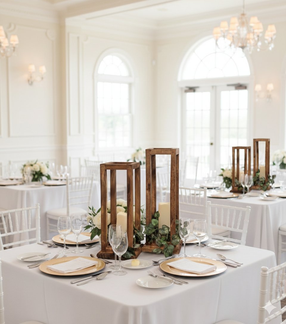 Handcrafted Wood Candle Lantern: Rustic Farmhouse Wedding Centerpiece